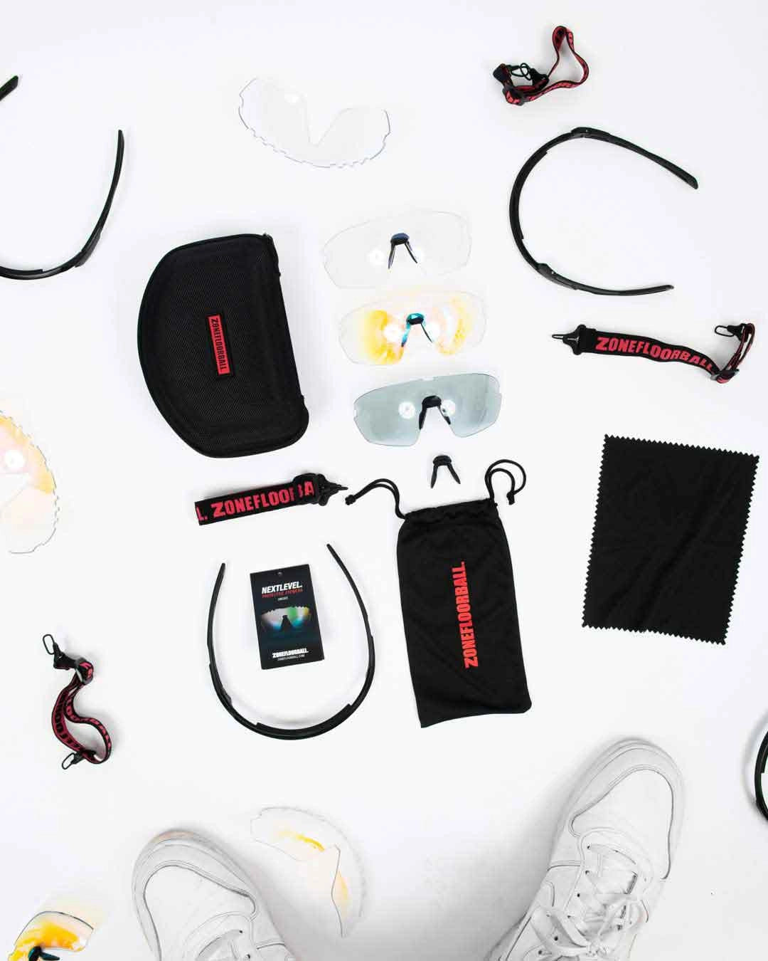 EXHANGEABLE LENSES IN THREE COLORS.