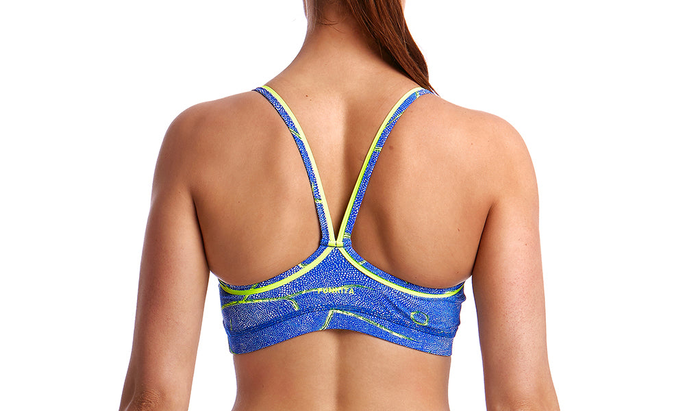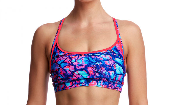 Firm fitting sports crop top with racer back and double strap bind finish with wide elastic for under bust support to give you the support you need in a sports top. Sold as separates.